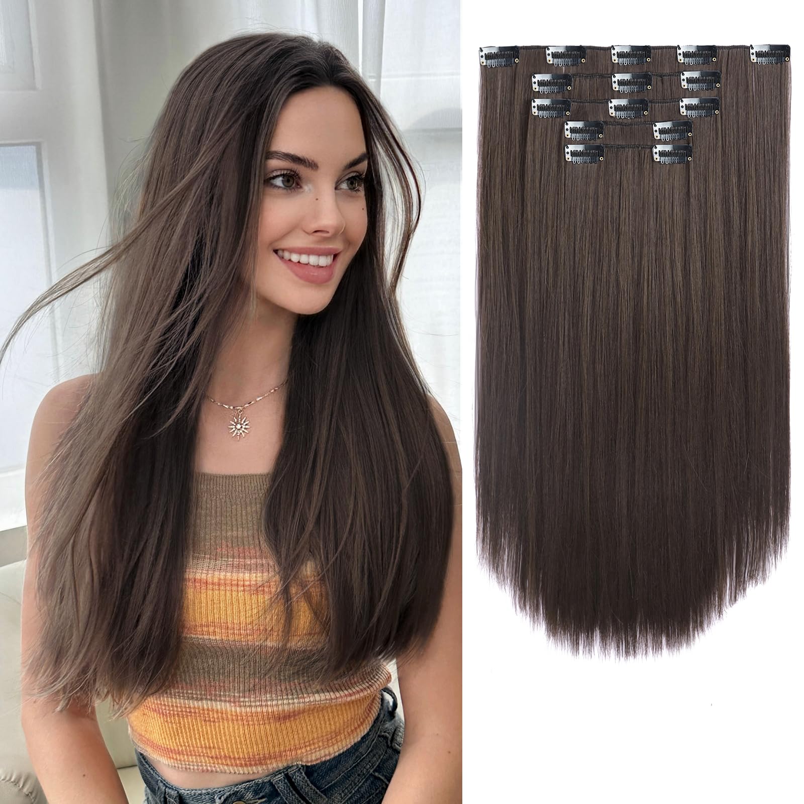 The set includes 12 pieces, each with a secure clip that snaps in effortlessly — perfect for a flawless, natural look.